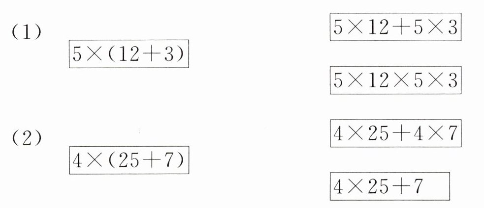 (1) $5×(12 + 3)$——$5×12 + 5×3$