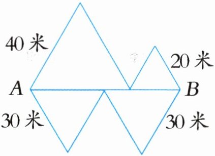 4 胜利小区有一个由4个等边三角形组成的花园(如下图),从A地到B地,走哪条路最近?图中哪两条路一样长?为什么?