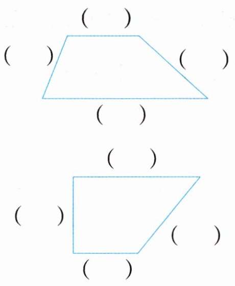 2 画出下面各梯形的高,并填出梯形各部分的名称。