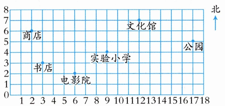 (4)不同位置 $(2,6)$表示商店 $(6,2)$表示电影院