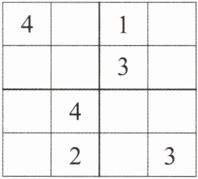 在下面的方格中,将1~4填入空格内,每行、每列及粗黑线划分的区域内数字均不重复。