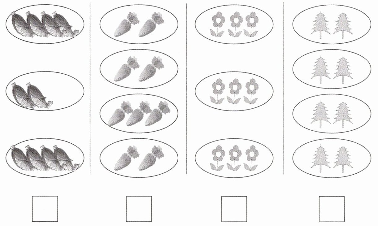 1. 哪种分法是平均分?在平均分的□里画“√”。