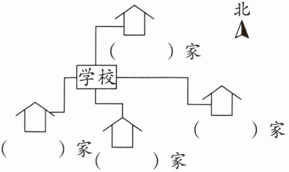 2. 小丽上学先向东走,再向北走,最后向东走到学校。