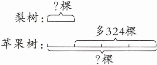梨树: $ 324 ÷ (4 - 1) = 108 $(棵) 苹果树: $ 108 × 4 = 432 $(棵)