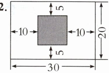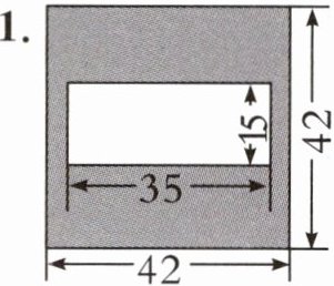1. $ 42 × 42 = 1764 $(平方厘米) $ 35 × 15 = 525 $(平方厘米) $ 1764 - 525 = 1239 $(平方厘米) 2. $ 30 - 10 - 10 = 10 $(厘米) $ 20 - 5 - 5 = 10 $(厘米) $ 10 × 10 = 100 $(平方厘米)