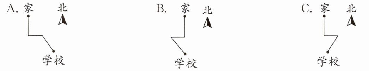 2. 圆圆从家出发,先向南走,再向东走,最后向西南方向走就到学校了。下面各路线图正确的是(