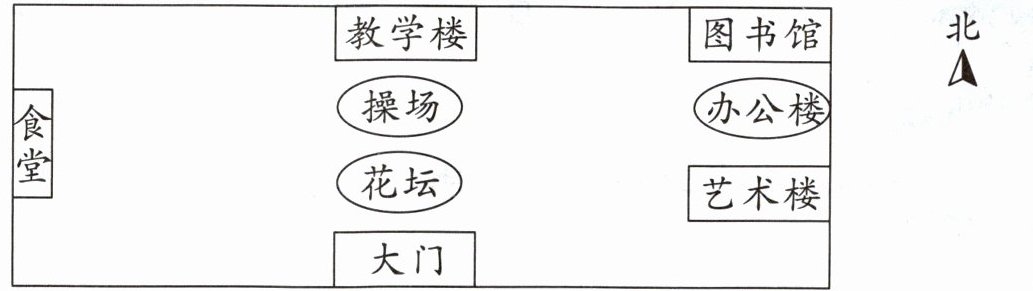 1. 办公楼 教学楼 2. 南 西 3. 花坛 操场 教学楼 4. 东南 东北