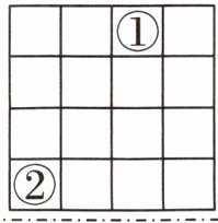 下面是一幅“走棋”图,从①处走到②处,要求每格都得走到,但不准重复,不准跳动,画出你的“走棋”路线。