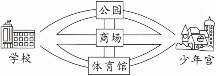 1. 小明从学校到少年宫,一共有几种不同的路线?