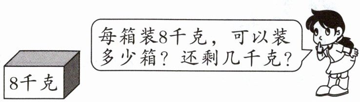 $ 964 ÷ 8 = 120 $(箱)······4(千克) 可以装 120 箱,还剩 4 千克。