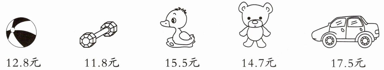 2. 圈出两件你喜欢的玩具,并算一算购买它们一共需要多少钱。