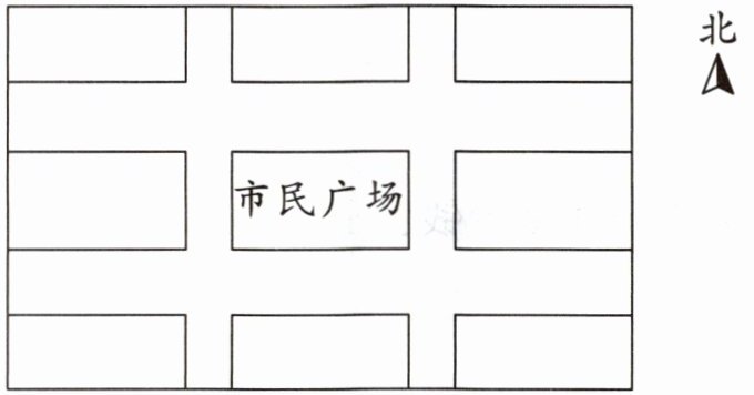 1. 市政府和科技馆分别在市民广场的北面和西面。