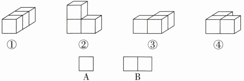 1. 从前面看,是图A的有( );从前面看,是图B的有( )。