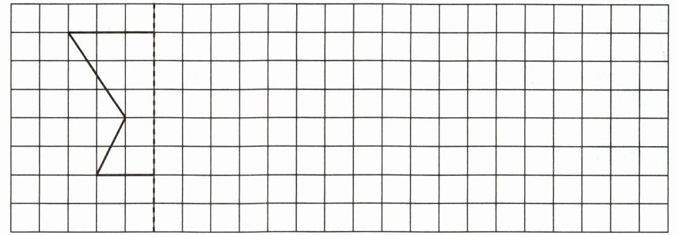 四、先根据对称轴补全下面这个轴对称图形,再画出这个轴对称图形向右平移$8$格后的图形。