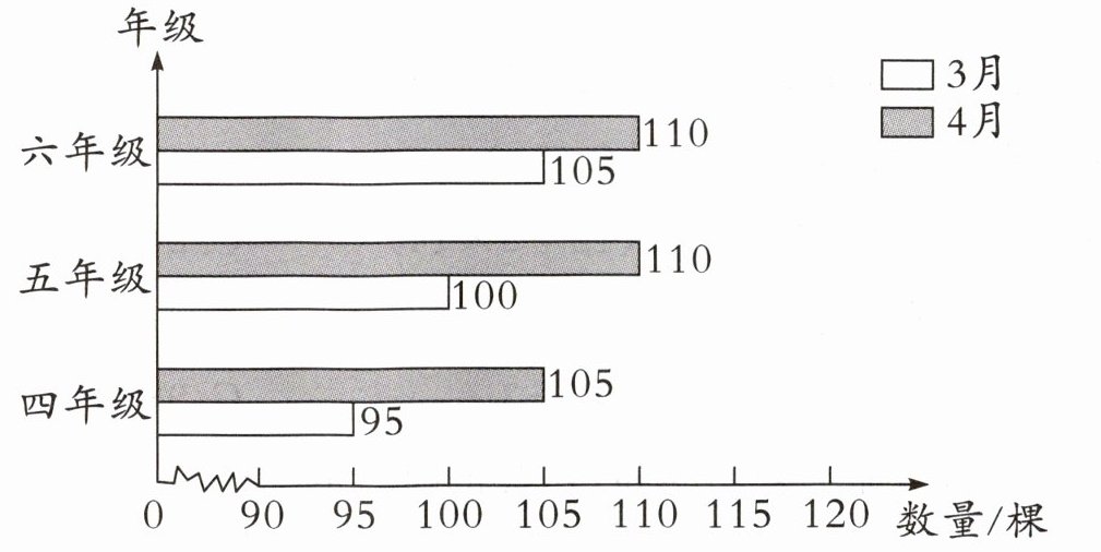 3. $3个年级3月比4$月少植树多少棵?