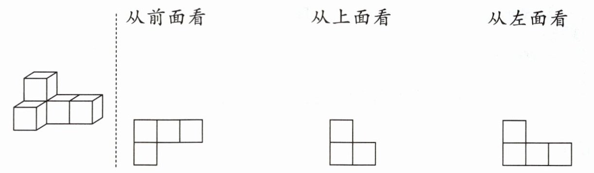 三、左边的物体从前面、上面和左面看到的分别是什么?连一连。