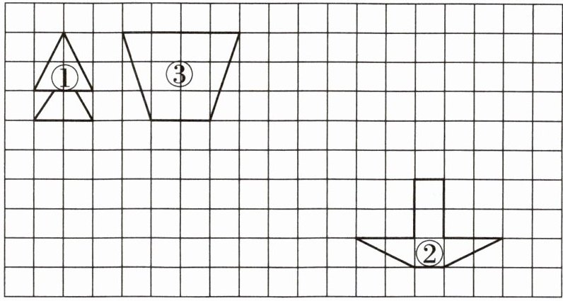 1. 分别画出图①向下平移 4 格后的图形,图②向左平移 7 格后的图形,图③向右平移 6 格后的图形。