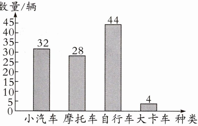 4. 贝贝下午$4:00\sim4:30$在某校门口调查交通情况,并制成了下面的条形统计图。