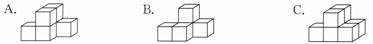 4. 用几个相同的正方体摆一个物体,从前面看是,从上面看是,从左面看是,这个物体是( )。