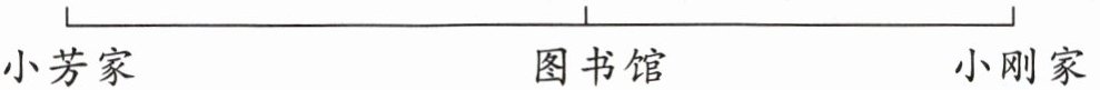 2. 下面是小芳家、小刚家和图书馆的位置示意图。小芳和小刚同时从家出发去图书馆,小芳每分钟走$55m$,小刚每分钟走$45m$,$18$分钟后两人同时到达图书馆。小芳家和小刚家相距多少米?