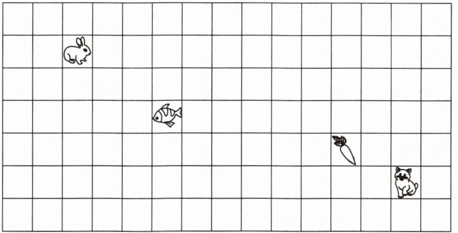 2. 小猫先向( )平移( )格,再向( )平移( )格,就能吃到鱼。