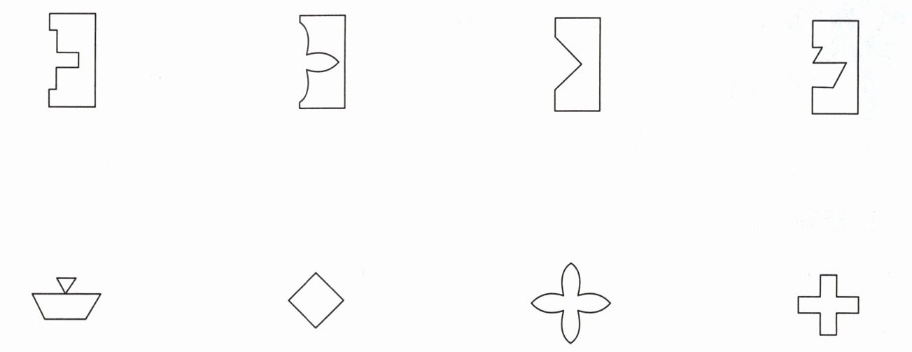 四、下面的图形各是从哪张纸上剪下来的? 连一连。