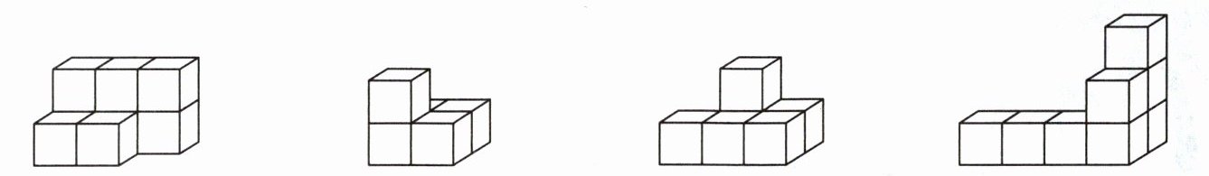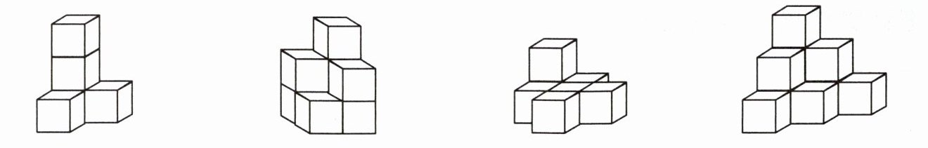 四、下面的物体各是由几个正方体搭成的? 搭一搭,数一数。