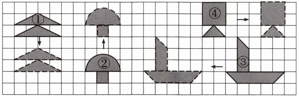 (2)图③向( )平移了( )格;图④向( )平移了( )格。