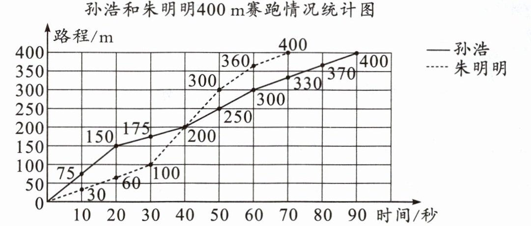 三、下面是孙浩和朱明明400m赛跑情况统计图。