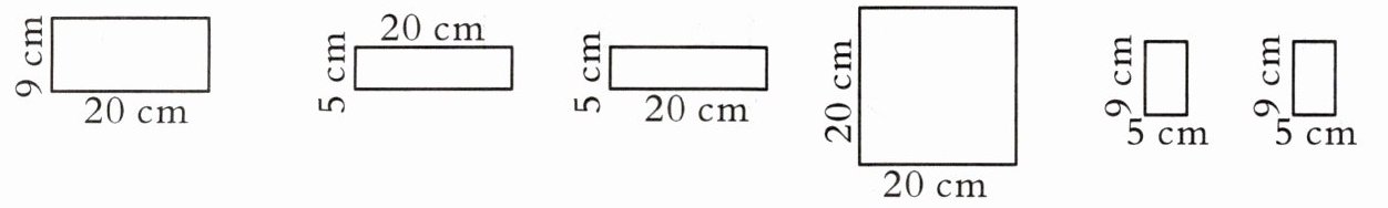解:选长20cm、宽9cm的长方形1块,长20cm、宽5cm的长方形2块,长9cm、宽5cm的长方形2块。