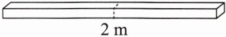 5. 如下图,一根长 2 m 的长方体木料沿虚线锯成两段后,表面积增加了$100cm^{2}$,原来它的体积是(