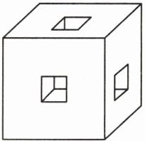 数学课上,老师带来一个玩具,这个玩具是由一个边长为 4 cm 的正方体分别在前后、左右、上下各面的中心位置挖去一个棱长为 1 cm 的小正方体做成的(如图)。老师让全班同学动脑筋,看谁能用最好的方法、最快地把这个玩具的表面积求出来。