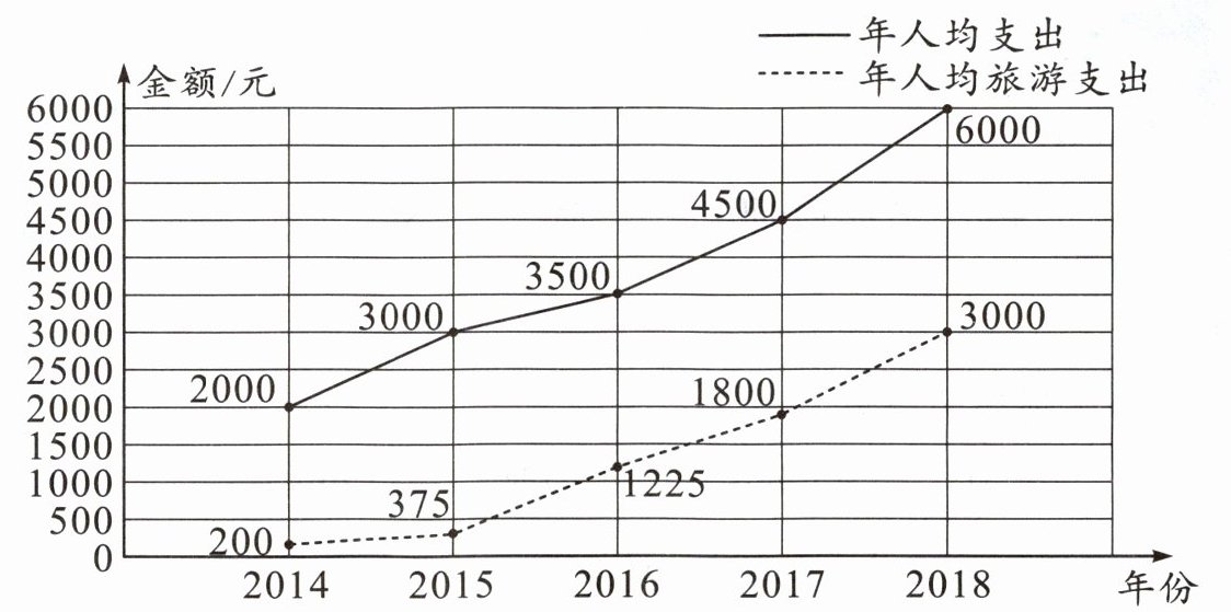 三、下面是某地区2014~2018年年人均支出和年人均旅游支出情况。