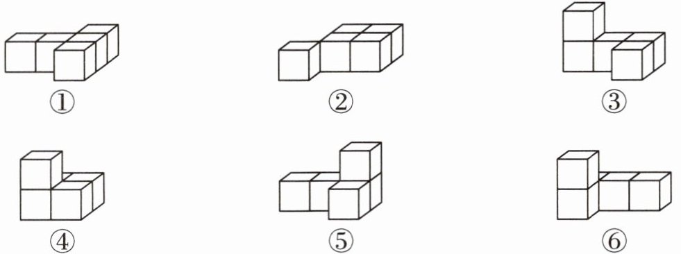 二、下面是用5个同样的小正方体搭建的一些几何体。(填序号)