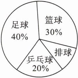 5.某中学开展课后服务,在体育类活动中开设了四种运动项目:乒乓球、排球、篮球、足球.为了解学生最喜欢哪一种运动项目,对全校2000名学生进行问卷调查(每位学生仅选一种运动项目),并将调查结果绘制成扇形统计图.下列说法错误的是 ( )