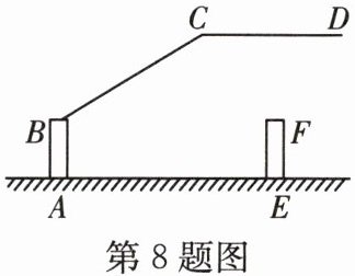 8.一个大门栏杆的平面示意图如图所示,$BA垂直地面AE于点A$,$CD平行于地面AE$,若$\angle BCD= 150^{\circ}$,则$\angle ABC= $______$^{\circ}$.