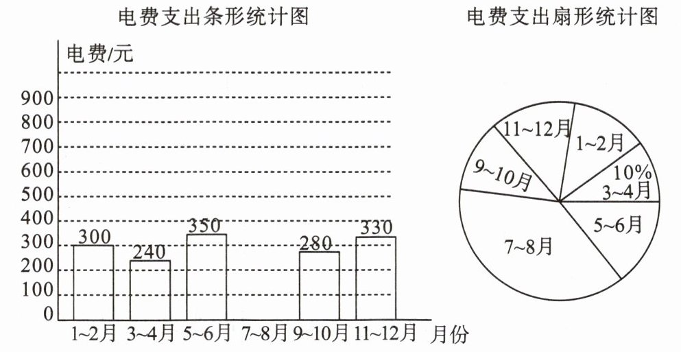 (2)7~8月份的电费为2400-300-240-350-280-330=900(元).补全的统计图如图:电费支出条形统计图