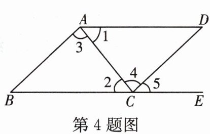 (1)$ \angle B + \angle B C D = 180 ^ { \circ } $;(2)$ \angle 1 = \angle 2 $;(3)$ \angle 3 = \angle 4 $;(4)$ \angle B = \angle 5 $.