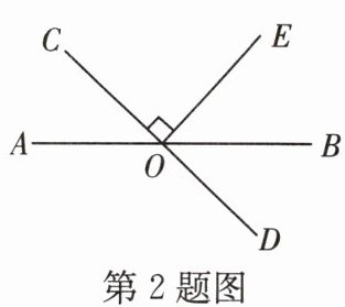 2. (北京中考)如图,直线 AB 和 CD 相交于点 O,$OE⊥OC$.若$∠AOC= 58^{\circ }$,则$∠EOB$的大小为 ( )