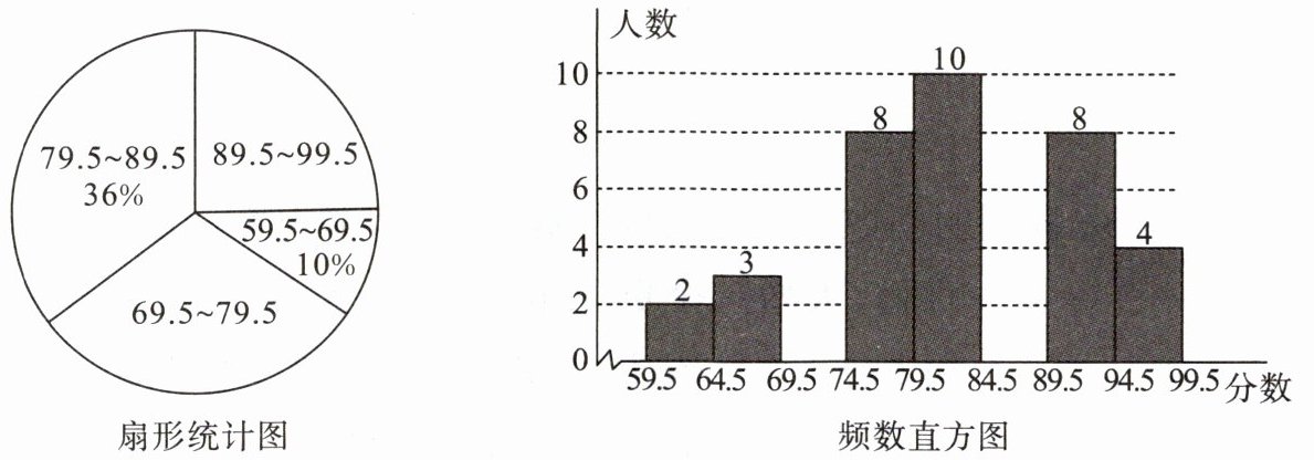 10.“校园诗歌大赛”结束后,张老师将所有参赛选手的比赛成绩(得分均为整数)进行整理,并分别绘制成如图所示的不完整的扇形统计图和频数直方图.
