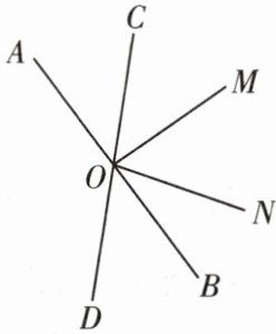 12.如图,直线AB与CD相交于点O,OC平分$∠AOM$,且$∠AOM= 90^{\circ }$,射线ON在$∠BOM$内部.