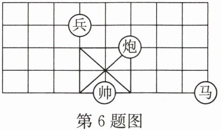6. (白银中考)中国象棋是中华民族的文化瑰宝,因趣味性强,深受大众喜爱.如图,若在象棋棋盘上建立平面直角坐标系,使“帅”位于点$(0,-2)$,“马”位于点$(4,-2)$,则“兵”位于点______.