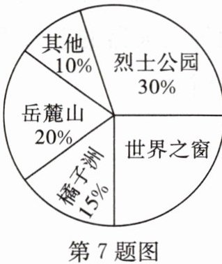 7.某校七年级准备开展研学活动,因此对全年级学生各自最想去的活动地点进行了调查,并把结果制成如图所示的扇形统计图,则"世界之窗"对应扇形的圆心角为______°.