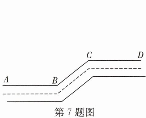 7. (镇江中考)如图,一条公路两次转弯后,和原来的方向相同.第一次的拐角$∠ABC是140^{\circ }$,第二次的拐角$∠BCD$是______$^{\circ }$.
