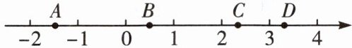 1.(宜昌中考)如图,$A,B,C,D$是数轴上的四个点,其中最适合表示无理数$π$的点是 ( )