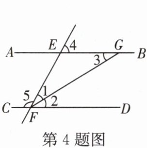 4.如图,直线AB、CD被直线EF所截,FG平分$∠EFD$交AB于点G.下列条件中,不能判定$AB// CD$的是 ( )