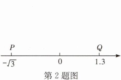 2.如图,点P,Q在数轴上表示的实数分别是$-\sqrt {3}$和1.3,则P,Q两点之间表示的无理数可能是 ( )