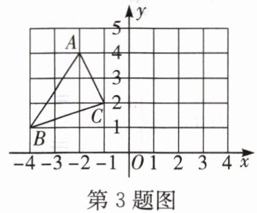 3.如图,在平面直角坐标系中,三角形ABC的顶点都在方格纸的格点上,如果将三角形ABC先向右平移4个单位长度,再向下平移1个单位长度,得到三角形$A_{1}B_{1}C_{1}$,那么点A的对应点$A_{1}$的坐标为 ( )