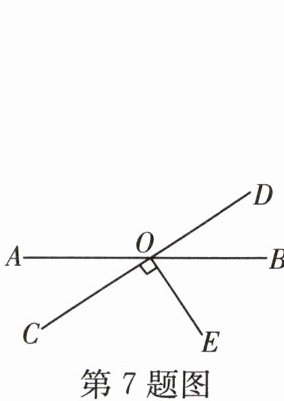 7.如图,AB与CD相交于点O,若$∠DOE= 90^{\circ },∠BOE= 56^{\circ }$,则$∠AOC= $______.