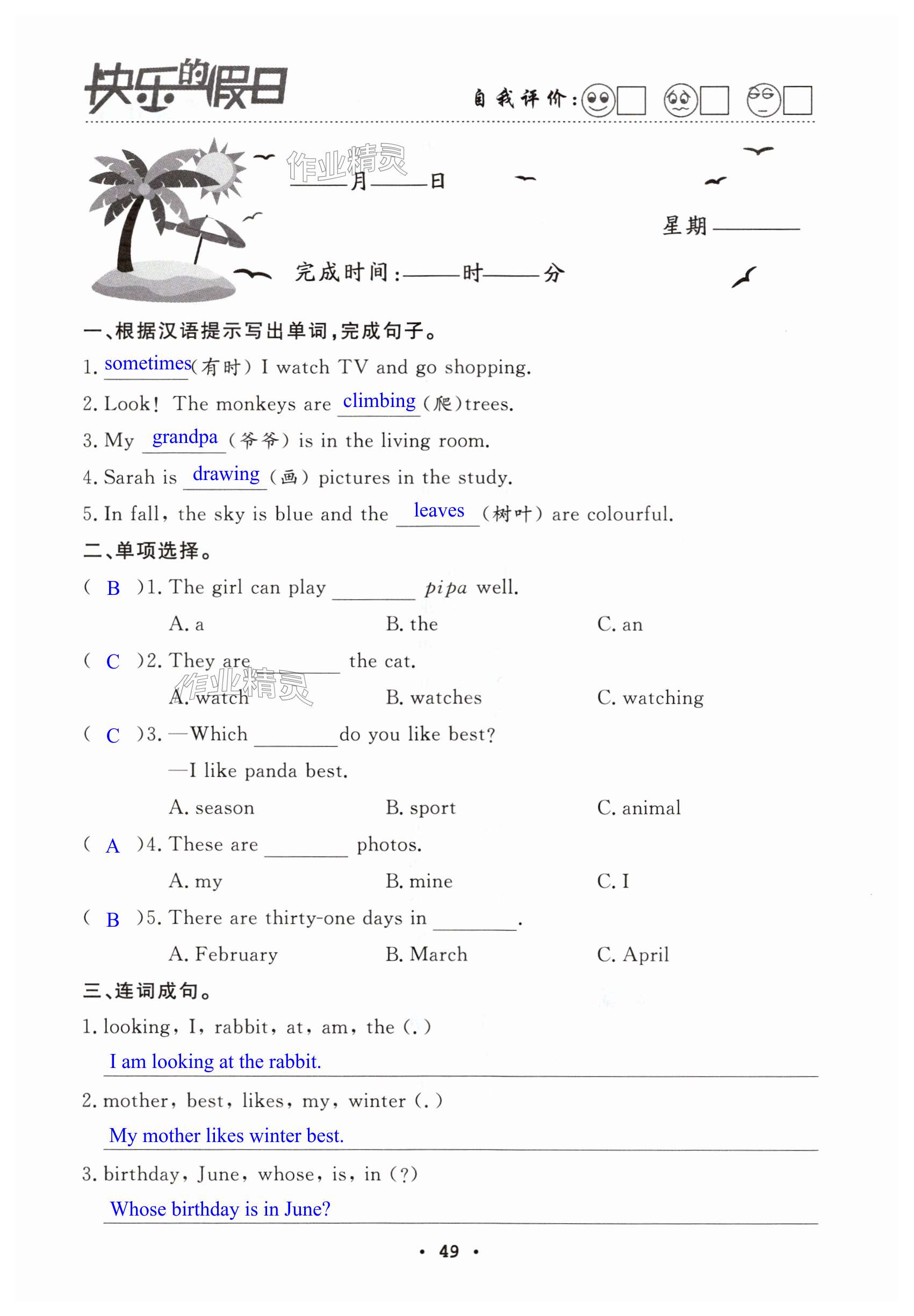 注:目前有些书本章节名称可能整理的还不是很完善,但都是按照顺序排列的,请同学们按照顺序仔细查找。练习册 2025年暑假作业快乐的假日五年级英语 答案主要是用来给同学们做完题方便对答案用的,请勿直接抄袭。